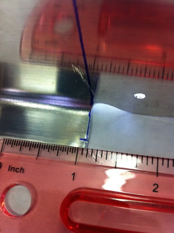 Today, I was cutting the excess off the flange on HS-702. When I started the cut with the snips, I ended up fracturing the flange 1/8" perpendicular to the intended cut line. The blue line perpendicular to the flange cut is the small fracture. See photo: