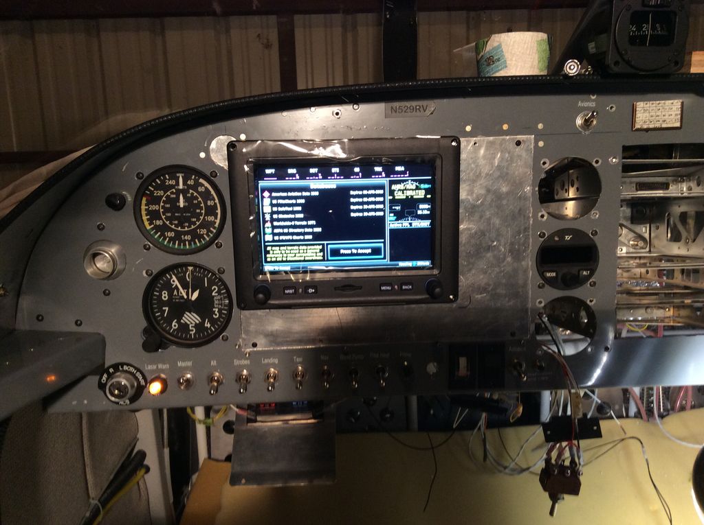 I'm just finishing putting a G3X panel into Bobby Lucroy's RV8A. The panel was beautify built by Steinair and includes a GNC 625, dual COMS, TXP 23, A/P, audio panel and ADSB.