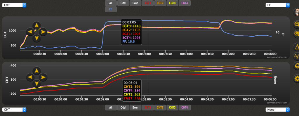 3. Based on fuel flows, and recent OAT, it would appear the CHTs are a bit elevated. Leaned out and in the summer might be a bit toasty.