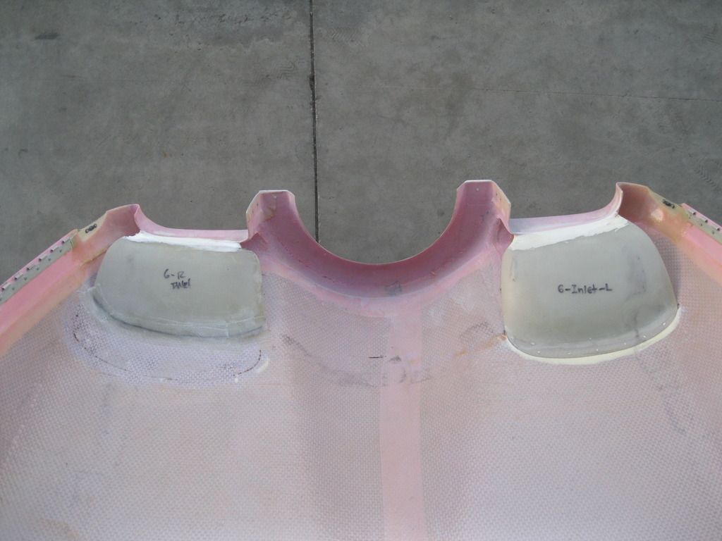 A lot of folks suggest that you should be able to get your fist between the leading cylinder and inlet ramp. In stock form, the left side ramp was just about perfect, but I cut and re-glassed the right side (left in picture), moving it forward to approximately match the cylinder stagger.