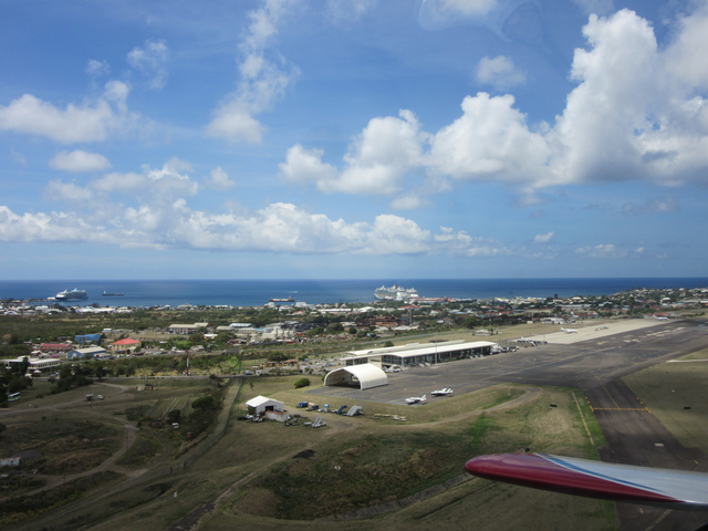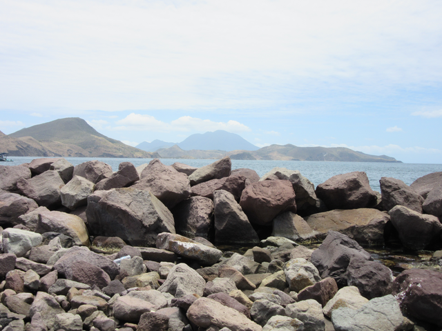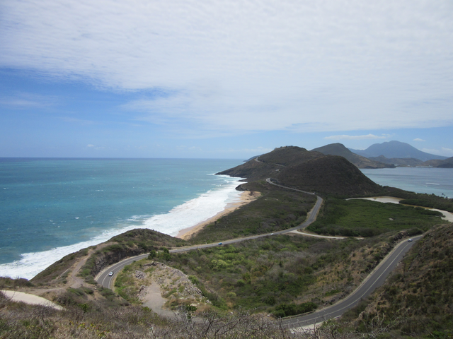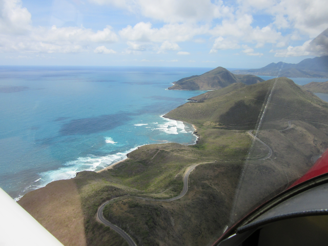 Atlantic on the west and Caribbean on the right. Nevis is the big hill in the back. We'll make a stop there for fuel before making our way to Grenda.