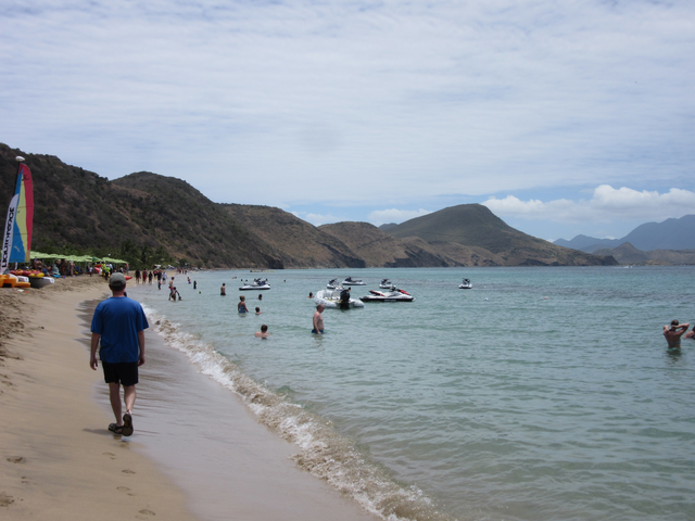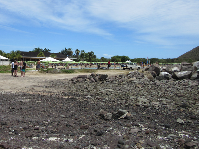 At the other end of the bay, we were sure the busy beach must have been a decent sized resort. There were people swarming like ants in and out of the water. When we got there we realized there were no rooms to be seen. It was a mass of cruise ship passengers invading the beach. It was definitely time to return to the quiet beach that was almost all ours just on the other side of the hill.