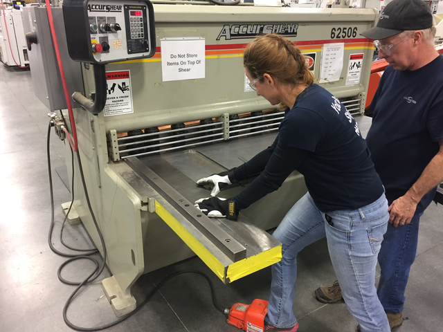 I saunter up just in time to take a picture. Guess who Didn't get to work the shear press that makes the whole shop floor rumble...
