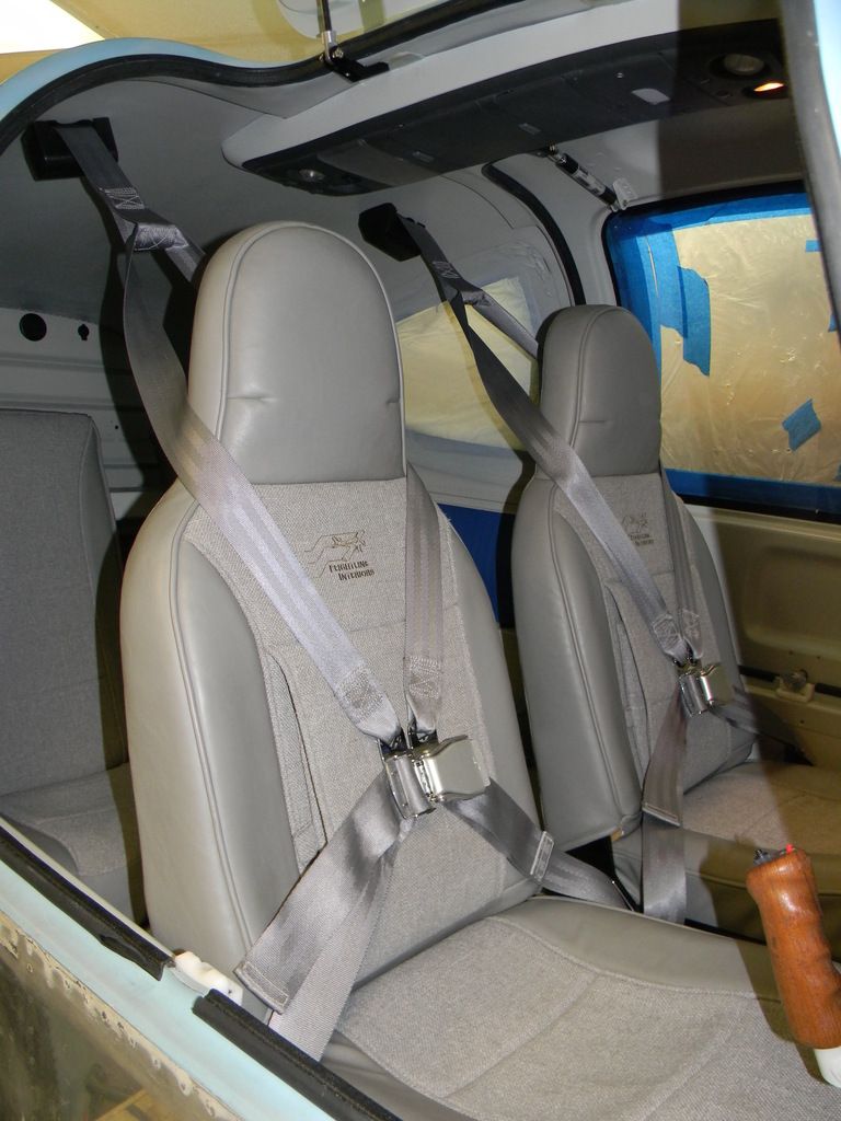 These seatbelts came out of a Cirrus that the owner changed color. They are AmSafe belts and fit my -10 perfect. The rears were a little challenging to install. Initially I had the inertia reels forward of the rear baggage panel. Decided to fabricate brackets to mount them aft of the baggage panel after I saw how much baggage room they took up.