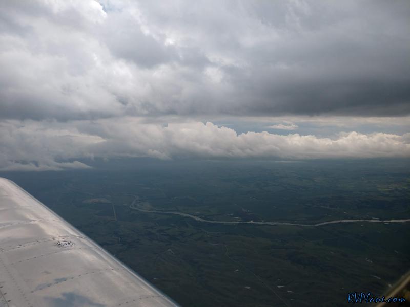 The clouds were slowly becoming more of a solid overcast. I stayed on top as long as possible, but I didn't want to stay on top as we approached the lines of storms, fearing a tall buildup of clouds would certainly be near the storms.