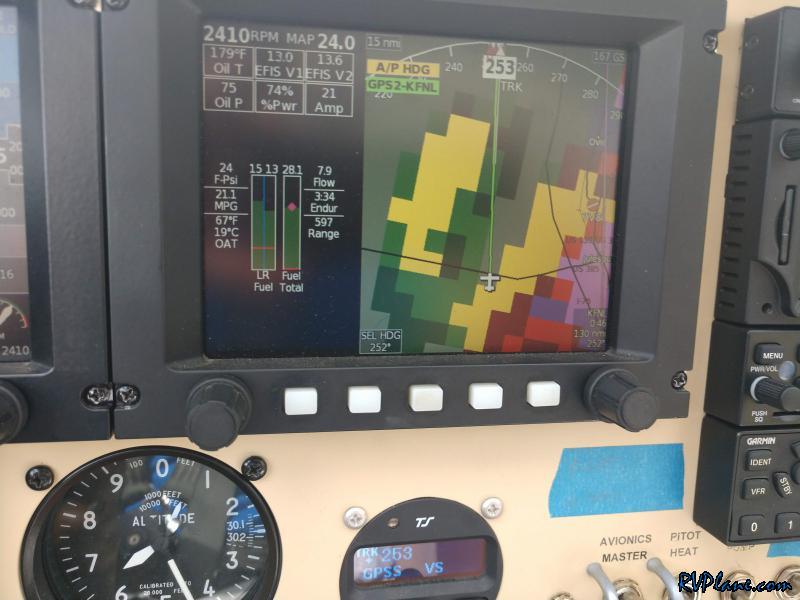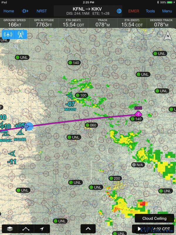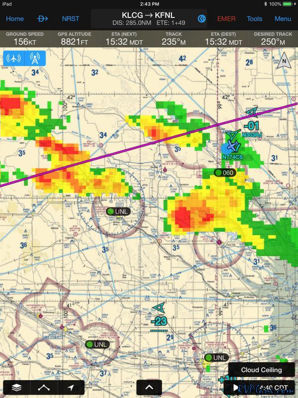 This is what I had been concerned about for the past 30 minutes or so - a storm cell moving over KFNL. Garmin Pilot and my GRT ADS-B painted the weather picture as somewhat grim.