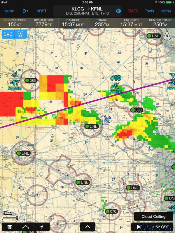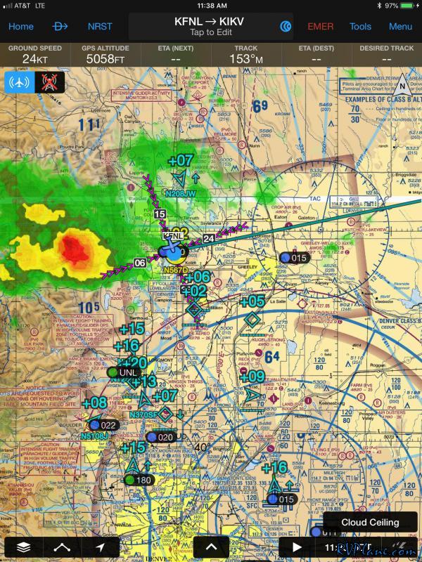 I dropped back down to 6,500' to fend off some headwinds and try to get to KFNL as quickly as possible. Some storms were quickly headed to the same destination I was aimed for.