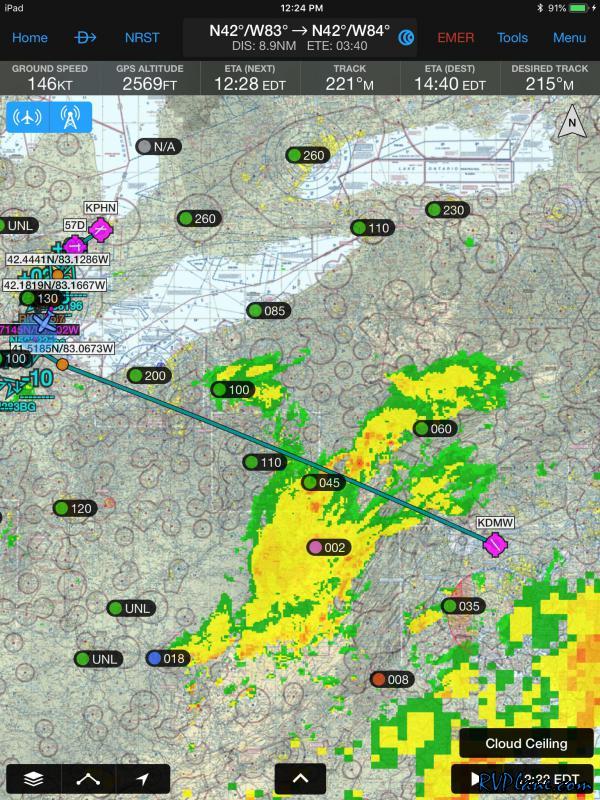 And here's the weather between me and home. And it was encroaching on my home airport......