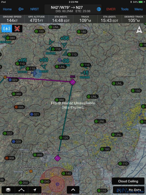 Great, just when I needed you the most, FIS-B radar dropped out on Garmin Pilot. Originally I thought it was due to being too low to pick up ADS-B.
