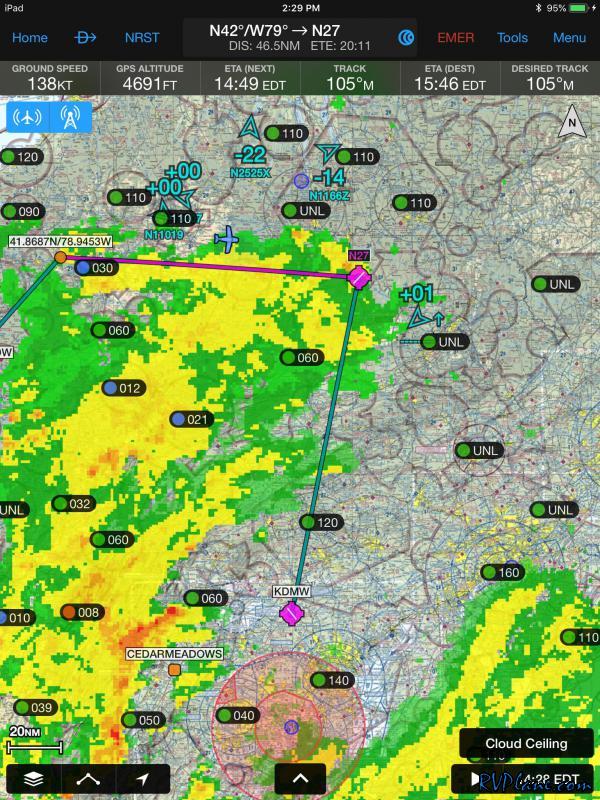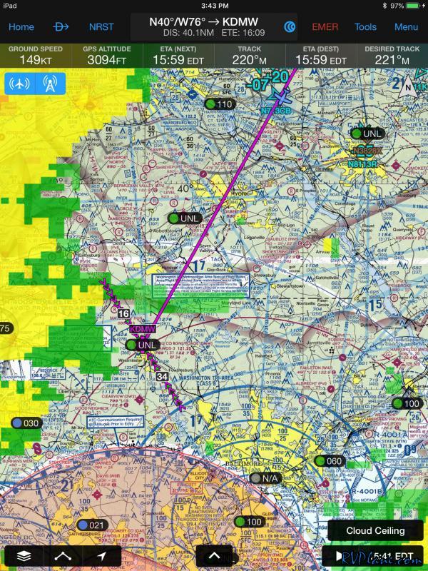 The race is on! If I couldn't beat the rain to KDMW, my backup plan was to put down in York, PA (KTHV) and wait out the weather or have someone come get me.