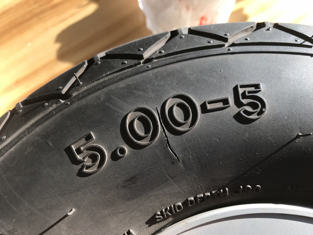 i dont see any wear on the tire - the little needle nubs are still present. The crack also seems to be following along some sort of flaw line in the rubber. Might look into getting the supplier to replace it on their nickle.