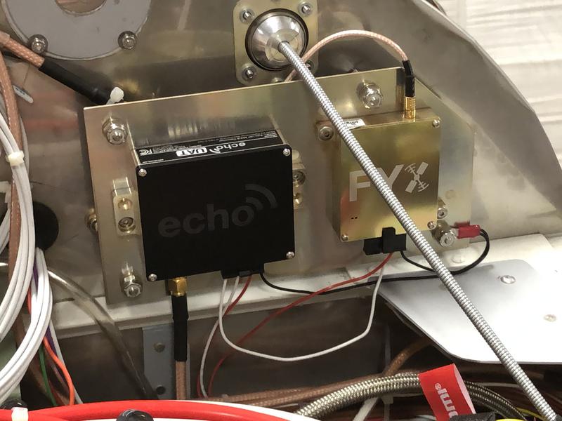 I installed both uAvionix boxes on the pilot side of the firewall. In addition, I installed a splitter for the GPS line. The splitter takes the signal from the existing antenna (mounted on the rear fuselage skin, under the canopy) and provides signal to both the panel mounted GPS (SL60) and the SkyFYX unit. Those boxes, along with a RAMI transponder antenna on the belly, completed the new hardware installation. (Please excuse the photos below, as the wires had not been dressed and the hardware was temporary at photo time.)