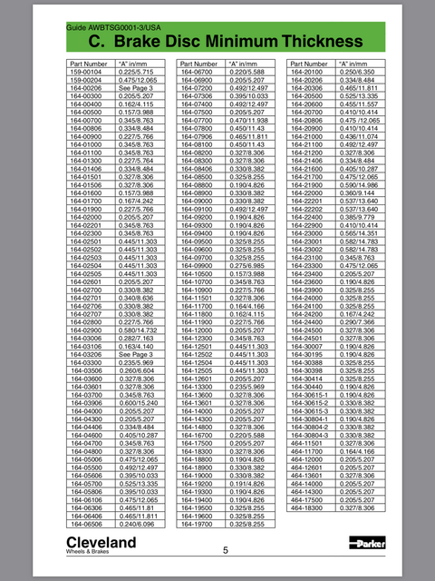 I need to turn my rotors but don't know the minimum thickness. I called Vans to ask but they don't know. They said there are 2 types of brands. I believe one is Matco and can't remember the other one. Unfortunately I don't know which brand I have. My 6 was built in 2000. If I could get the minimums for both brands that would be great so next time I remove the pants I'll already know.