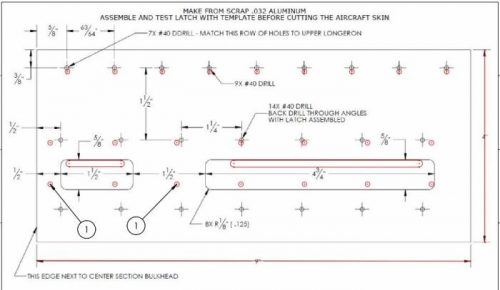 I?ve also been considering changing out my original stock Van?s tip-up canopy latch with the JDAIR latch. No question it is an improved functional latch and I regret not being aware of the product during my original build. Having said that, my airplane is painted and I am still considering the latch but wanted to show specially what would need to be done for a retrofit. items in red are from the Vans template with the JDAIR template as an overlay. I positioned as best as possible to minimize repainting issues. The two callouts circled ?1? are two flush rivet holes that would have to be filled with a rivet or some other method and repainted using their existing latch.