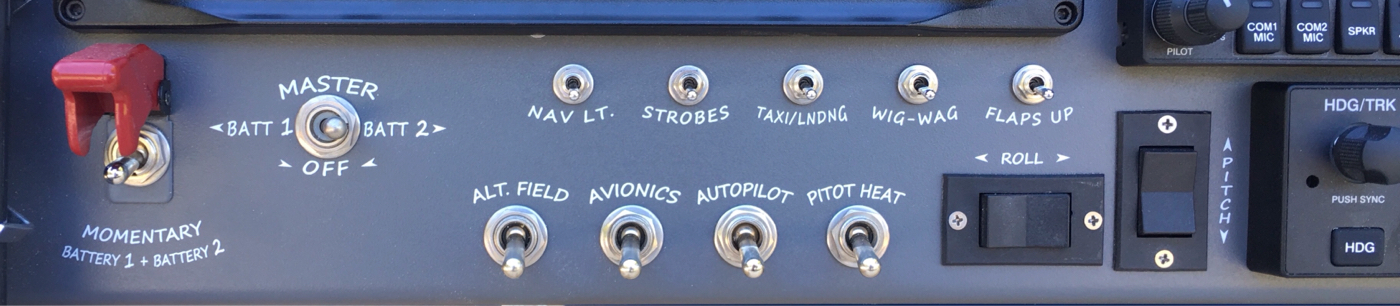 I also found it interesting that the entire redundancy system is driven by a single point of failure. Though maybe the backup is to hold down the momentary switch. You do realize that every bump in turbulence may result in an on off power cycle to the entire bus. Kinda rough on the avionics.