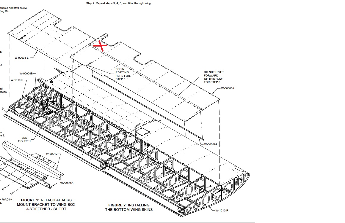 I have some oil canning on the bottom on my right wing as depicted by the red X in the drawing below. This appears to be somewhat common. The oil canning is slight, but it's there. After completing the wings on my -14 and having ample time to cool off and think about it, I've decided that I don't want to live with the oil canning.