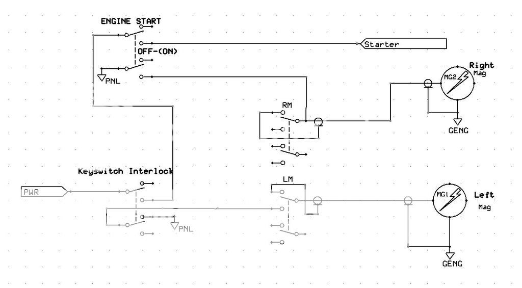 Also, is there a special reason for putting the momentary contact start switch between the two mag switches? Or could it be 'upstream' of both mag switches?