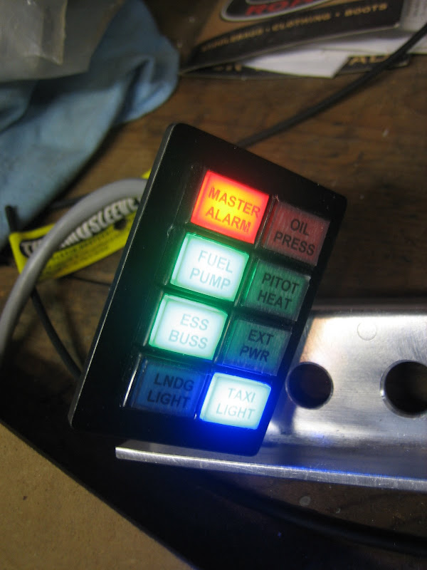 In working on some future design ideas, I decided to try and "repackage" the annunciator panel that I originally built for the Val - the one that fits up above my GRT EFIS stack.When I built it originally, I used discrete LED's, soldered in dropping resistors, and built the case from raw "U"-Channel stock.