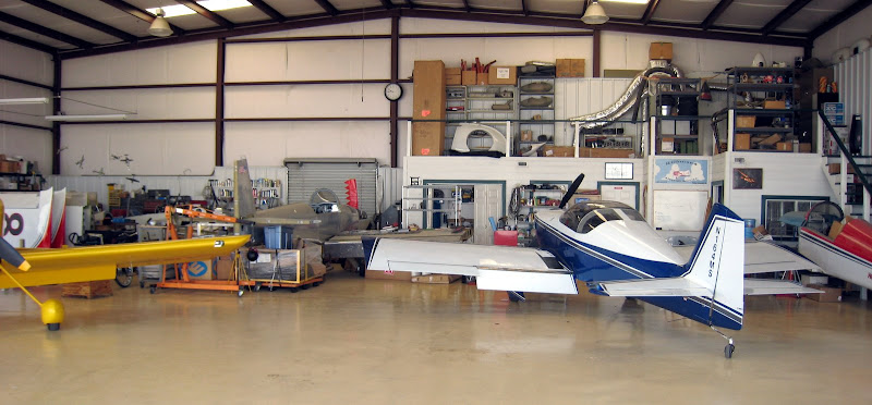 Okay, isn't this cool? I had four RVs to bunk with while at Randy Richmond's shop......1 flying, 1 undergoing reconstruction surgery after a premature landing, and two under construction. They were much more interesting company than that Kitfox!