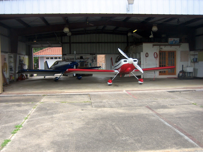 Bruce Bohannon's Flyin' Tiger (not shown) is spending the night at KLBX... but we did have a great time today flying everything else in the hangar! Pictured is an RV-8, two RV-4s, a Pitts S2b, and a Legend Cub. With all the fast and nimble birds in the hangar, the Cub is usually the first to fly in the morning and the last to fly in the evening. Life at Flyin' Tiger Field (81D) is almost better than we deserve.