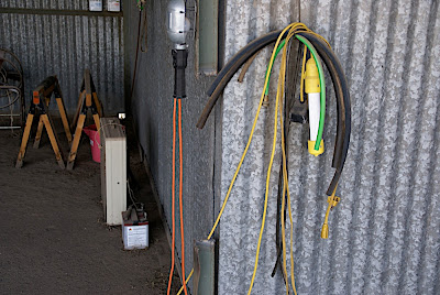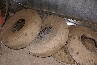 You never know when you might need some tires or tubes that still have some landings in them and they make nice habitat for yet more animals. I have a whole ecosystem right there in my hangar. It includes Needle Grass, Bull Snakes, Tarantulas, Wood Rats and Black Widow spiders all in the setting of rain run-off mud.