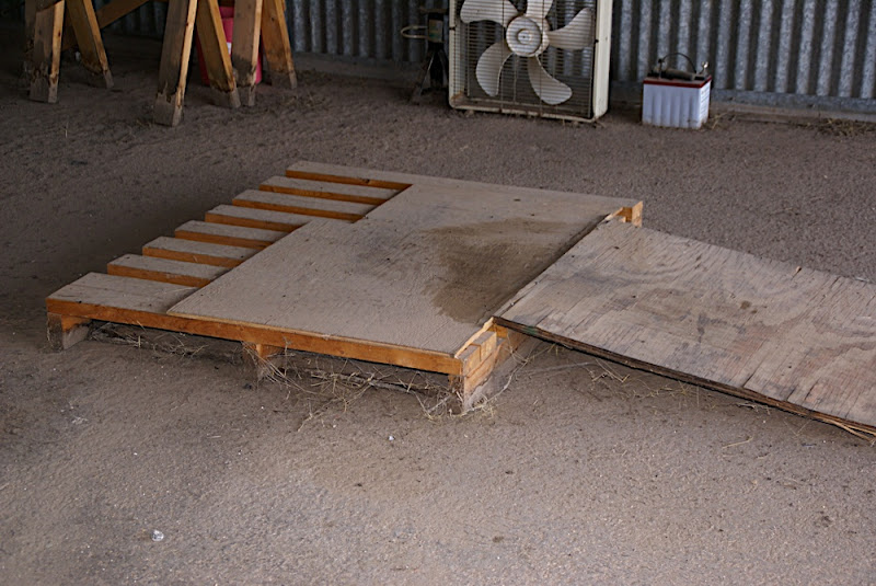 And this platform is my modification to keep the tailwheel out of the water. Note the water line several inches up the legs of the sawhorses in the background. This airport is in the desert but apparently a large part of the airport water runoff goes though my hangar.
