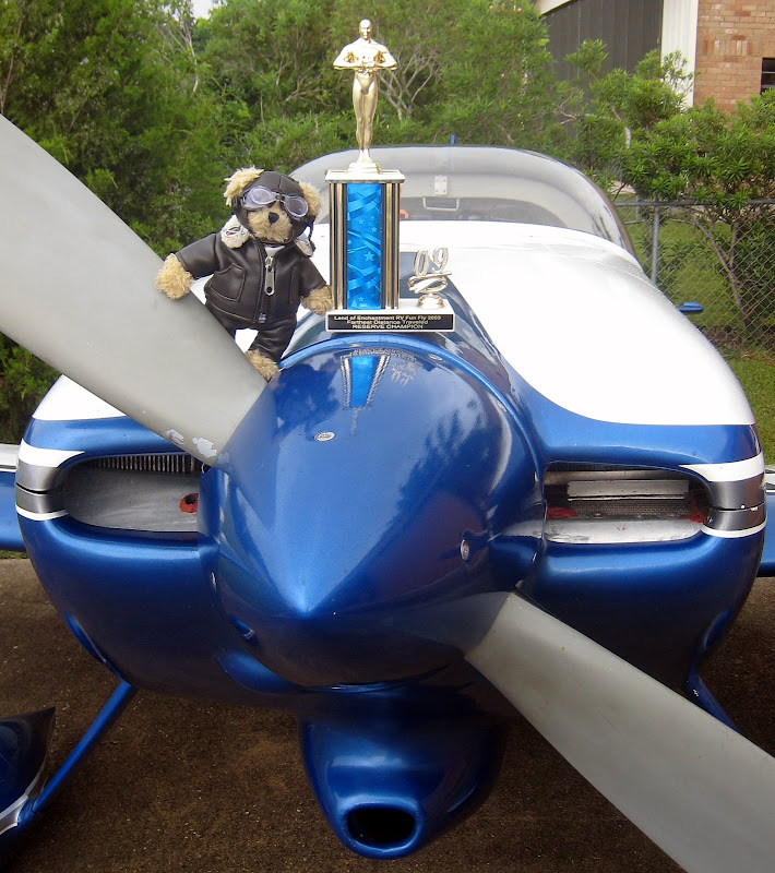 Once home, Bear and I celebrated our championship! Out of my way, Valkyrie, I'm (once again) an award-winning airplane!