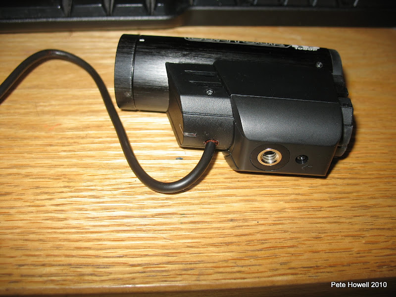 Drill a hole the exact size of your external mic lead in the front left side of your camera. Drill through the internal shell as well as the external cover.