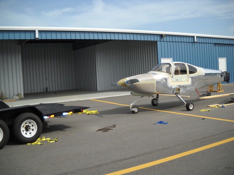 After a long Sunday ride from Alabama, we unloaded Pat's fuselage from the trailer and into a new (literally) hanger at ZPH: