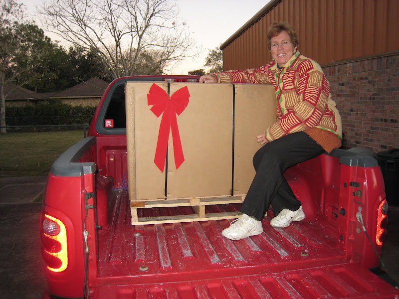 Mattituck put our new TMXIO-320 on a truck last Thursday. Lo and Behold, when I went and checked the yellow freight (YRC) web site this morning, it was in the Houston Terminal! A quick phone call confirmed that I could come by anytime before 7:00 pm to pick it up (and storage charges would accrue after 24 hours?), so as soon as I could cut myself loose from work in the afternoon, I was on my way. Of course, once I got to the terminal on the northeast side of Houston, they had to go looking for the crate (?can you tell us how big it is? What does it look like??), but in relatively short order the crate worth more than my truck was on the way home with me.