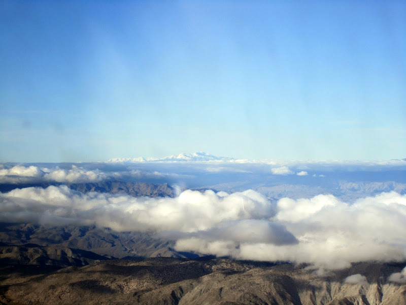 Sure enough, the weather-guessers were right, and the storms cleared out of the SoCal region just as they predicted. Unfortunately, the same system spawned some mountain obscuration and showers in the mountains across southern Arizona as it moved east. When I heard a Barron call Center for lower because he was picking up some ice at 9,000, I decided it was time to stop short in Demning and reconnoiter. I-10 looked like a good VFR router to follow, with easy retreats if we ran into something ugly. XM was showing the showers rapidly diminishing, and by the time we had a little snack and a visit, the way was clear with broken to scattered skies. We launched for Casa Grande and enjoyed some time picking our way across the desert and mountains, finishing up on top for the last 100 miles.
