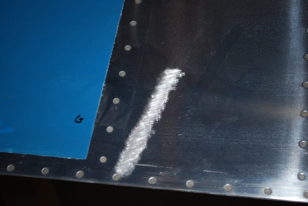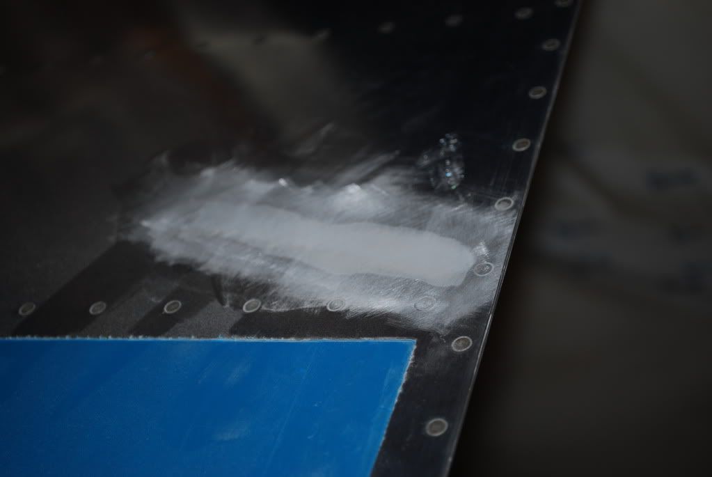 Finally, here are some pictures of the fix. It is perfectly flat even though the pictures don't necessarily show it. Once primer is on this...you will never know it existed. I sanded the dent and crease with 80 grit (lightly). I then filled it with microballons and epoxy and sanded it down with 180, 220, 320 and finally 400 grit.