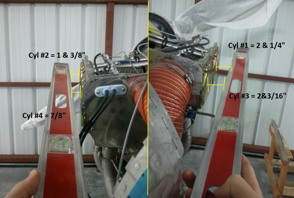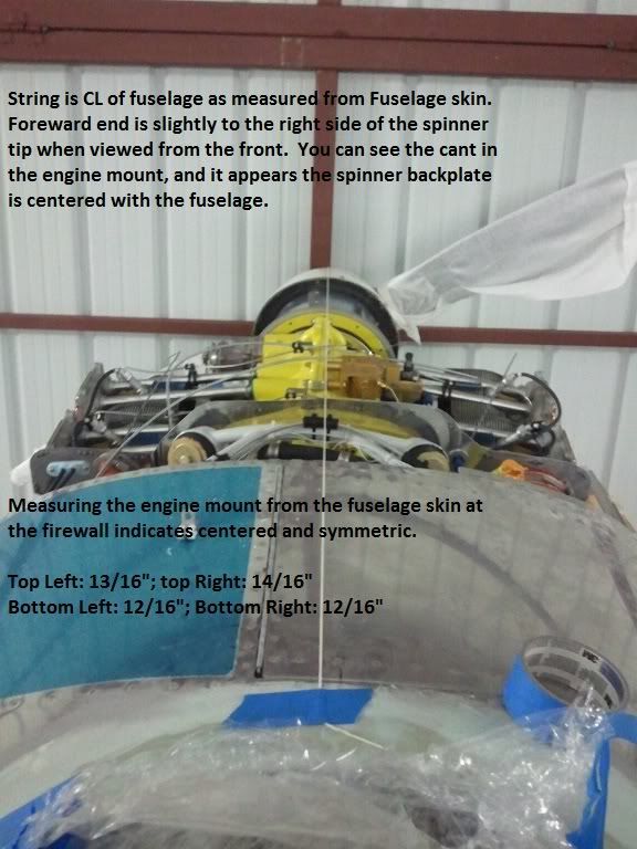 Gus at Vans confirmed my engine appears to be mounted correctly, and confirmed that Cyls #2 and #4 will be very close due to the one point something or other cant in the engine and that some point behind the spinner tip will be centered on the fuselage. (Mine is!)