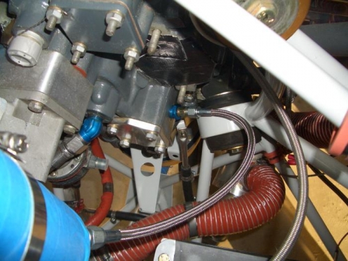 I mounted the air/oil separator to the firewall backed up with a doubler to spread the load. I installed the adapter fitting in the engine and then connected the separator to the engine with 3/4" hose and the aeroquip fitting. I still need to fine-tune the clock position of the separator and trim the hose a bit (can't forget to add the clamps). I think this solution will work out pretty good. The fittings weren't all that expensive, less than $25 for both and the hose was $6 a foot, took about 8-9inches.