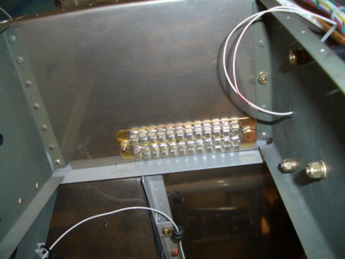 You can see what is on the other side (engine side of firewall). Plenty of room for the cowling hinge pins. Engine ground strap comes to the stud on the far right. Battery ground goes to the larger stud on the forest of tabs ground block.