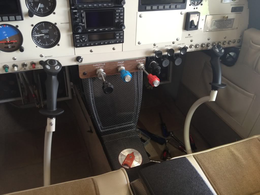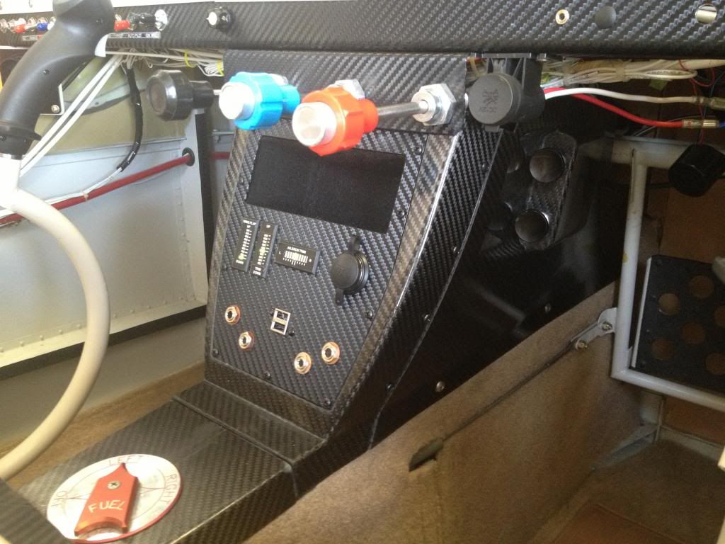 The center console is approximately 1.5" forward from intended, and I had to increase the angle of the lower panel by about 2 degrees. I am happy with the results, but plan to incorporate the stock Vans throttle mounting angle into the lower panel by moving it back about 1/8" for a smoother transition between the two. The Vans throttle mount is 1/4" wider than the Aerosport panel and centers up perfect.
