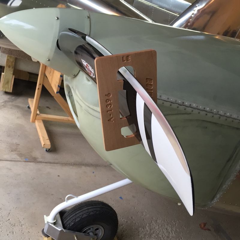 I found an interesting wooden tool with my prop that appears to be custom made by them for the setting of prop pitch using a digital level. Did these get added to the kits recently? (Mine arrived last December.) I zeroed a digital level relative to the canopy rail (thanks, Scott!) and then measured the angle of the top of the wooden tool. Thanks to the previous poster who also mentioned that you have to measure the ascending prop blade, and don't assume that the ascending blade angle is the negative of the descending angle.