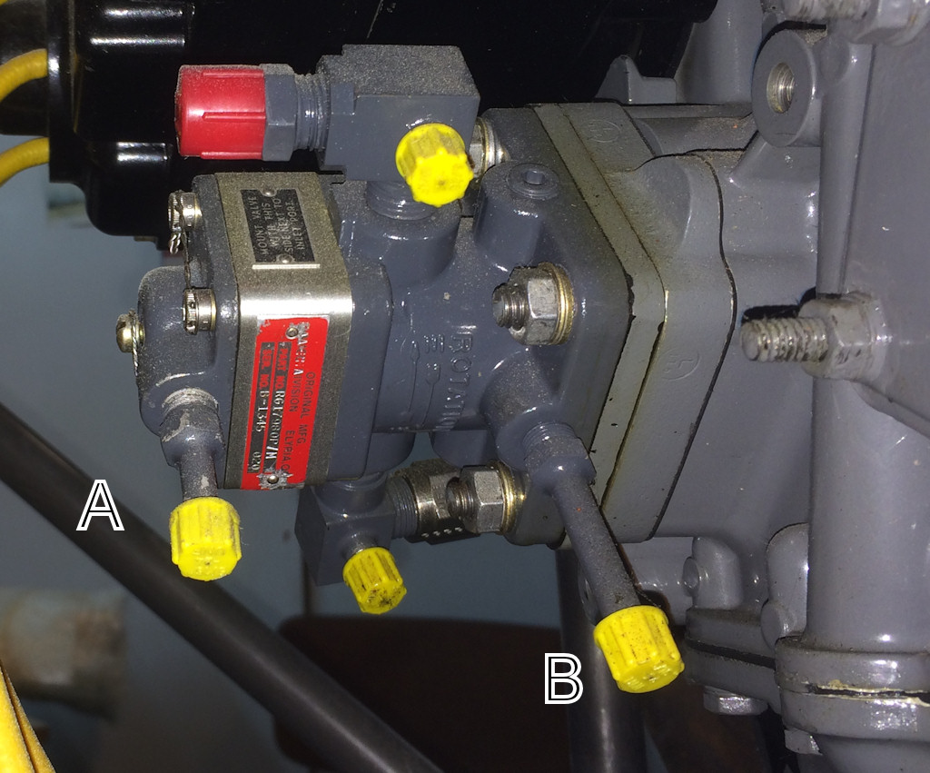 I don't have a manual but I've had these apart. I believe the left one is the bypass return and the right one is a drain so that if fuel gets past the seal it does not get into your engine oil. Not 100% sure since its been several years since I've had one apart.