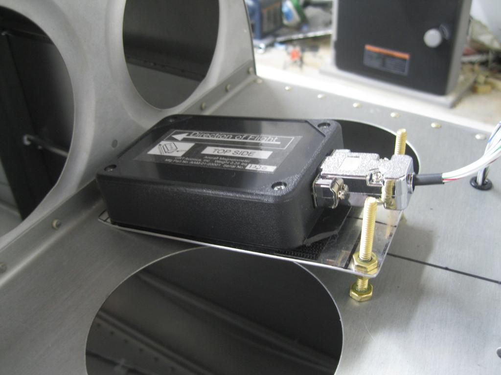 I'm gonna try the rear mount for the magnetometer. Initial indications are good....zero compass deflection when moving rudder cables. To simulate the steel in the elevator control horns, I put a couple of big crescent wrenches back there and moved 'em around a bunch, and still no deflection, so I think I'm good.