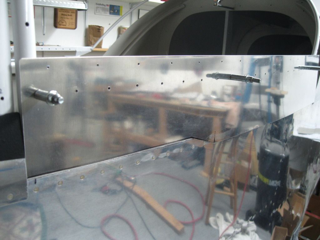 On the QB fuselage with the canopy deck rails already in place, it's really tough to get at the top rivets of the F-705 crossmember. so I thought a little creative scalloping was in order. Later, I might make a cosmetic fill piece and pop-rivet it in place. Or not.  It's far enough back that it's not that noticeable.