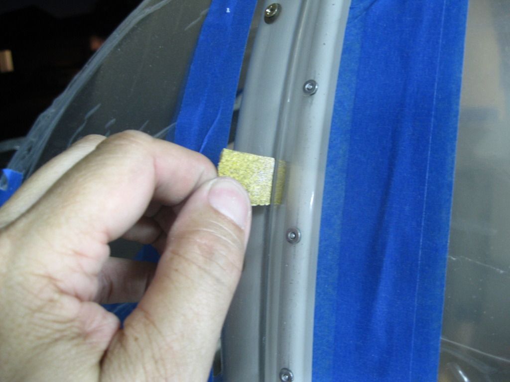 Got out the 80 grit and started roughing up the plexi and aluminum. On the corners of the windscreen I had left a little too much "kick up" on the corners of the plexi for a smooth transition, so I sanded them down in place with my mini angle grinder.