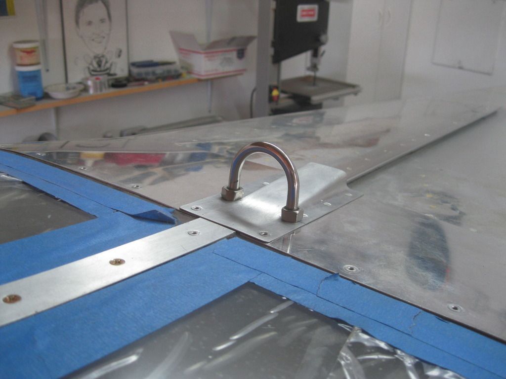 Lowe's Aviation offered this lovely, non-TSO'd stainless lift handle for the rear canopy, more commonly known as a U-bolt. I made a plate underneath that extends forward under the plexi to make it a bit more solid. Gotta love Experimentals!!