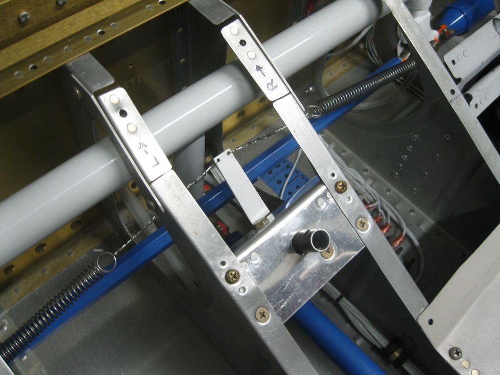 Finished up the aileron trim mechanism, safety-wired the tank attach brackets, hooked up the strobes/landing light for a post-Christmas green/red light show, and generally neatened up the wiring around the control sticks. All control surfaces rigged, and jam nuts tightened, Loctited and marked with TorqueSeal.