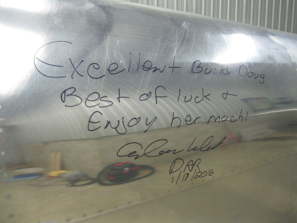 Congrats again, Doug. Serendipity that I just happened to show up at your hangar at the final signing of the AW cert. Have a safe Phase 1, and let me know when you are down around here for your training. I would be glad to have you go flying again.