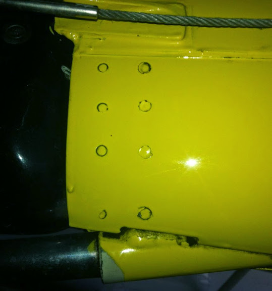 The homestrip where the plane is flown from, is grass wit Perform plates on it. Those plates are pressed into the ground, grass is growing throu the holes, but still there is a "structure" that makes landings "noisy". I think the perforation in the plates bring the tailboom to vibrate and then it starts to harm thestructure. Do you think that this can make those rivets "smoke" and come loose?