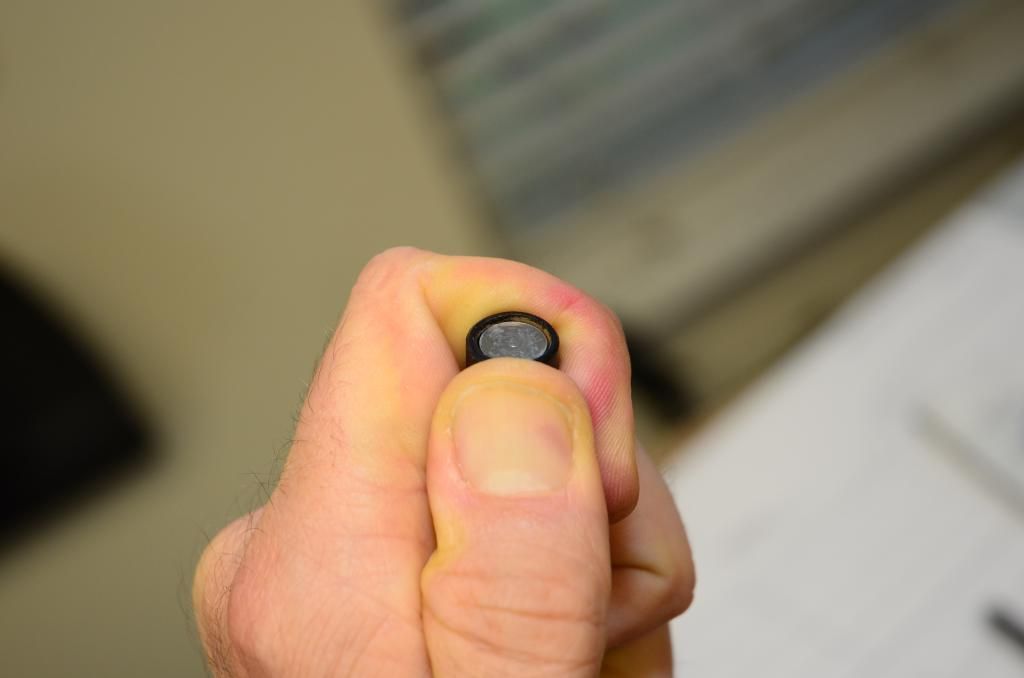 Sure enough, upon closer inspection, you can see a small nub in the center of the set. More critically, the set is slightly concave - not flat - with the center being slightly lower than the outer surface. Fairly tough to see in the pic: