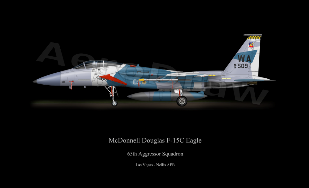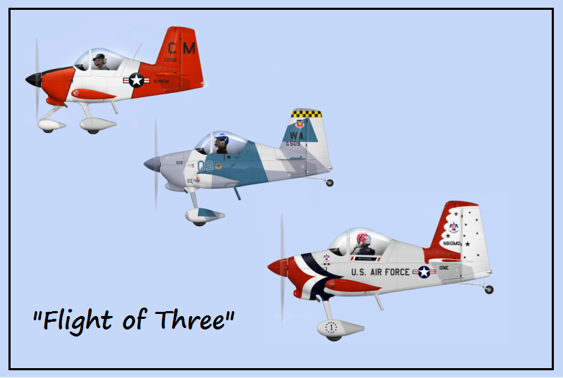 The middle aircraft paint scheme is a caricature of tail 509, an F-15C Aggressor jet that (for now) flies as a member of the 65th Aggressor Squadron out of Nellis AFB, Nevada. I'm an Aggressor pilot and the owner/co-builder (along with my wife) of an RV-6 and that jet happens to have my name on the side of it right now: