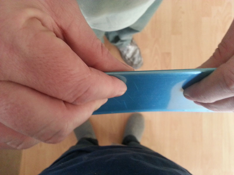To correct the under bended area I took the skin in one hand and squeezed it between my fingers so the both sides touched each other.