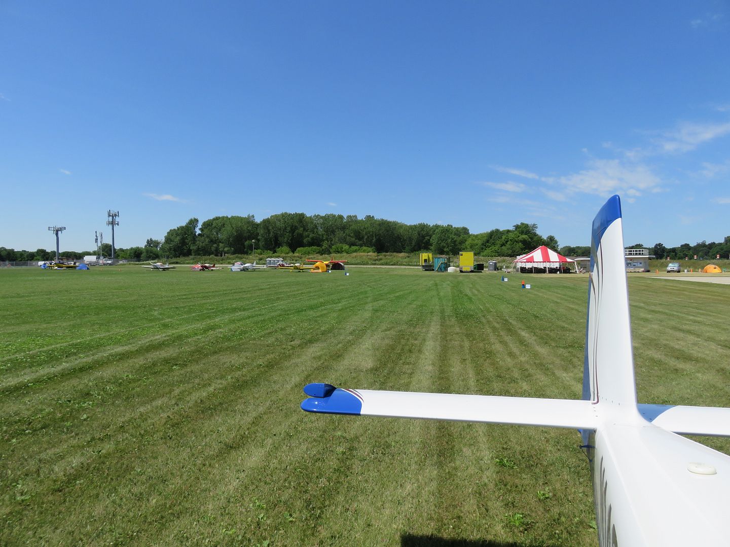 We arrived at Oshkosh about noon on Friday and taxied to HBC. It has been a few years since we have flown in on Friday. It is pretty quiet. Here is a picture of HBC camping looking west from row 307.