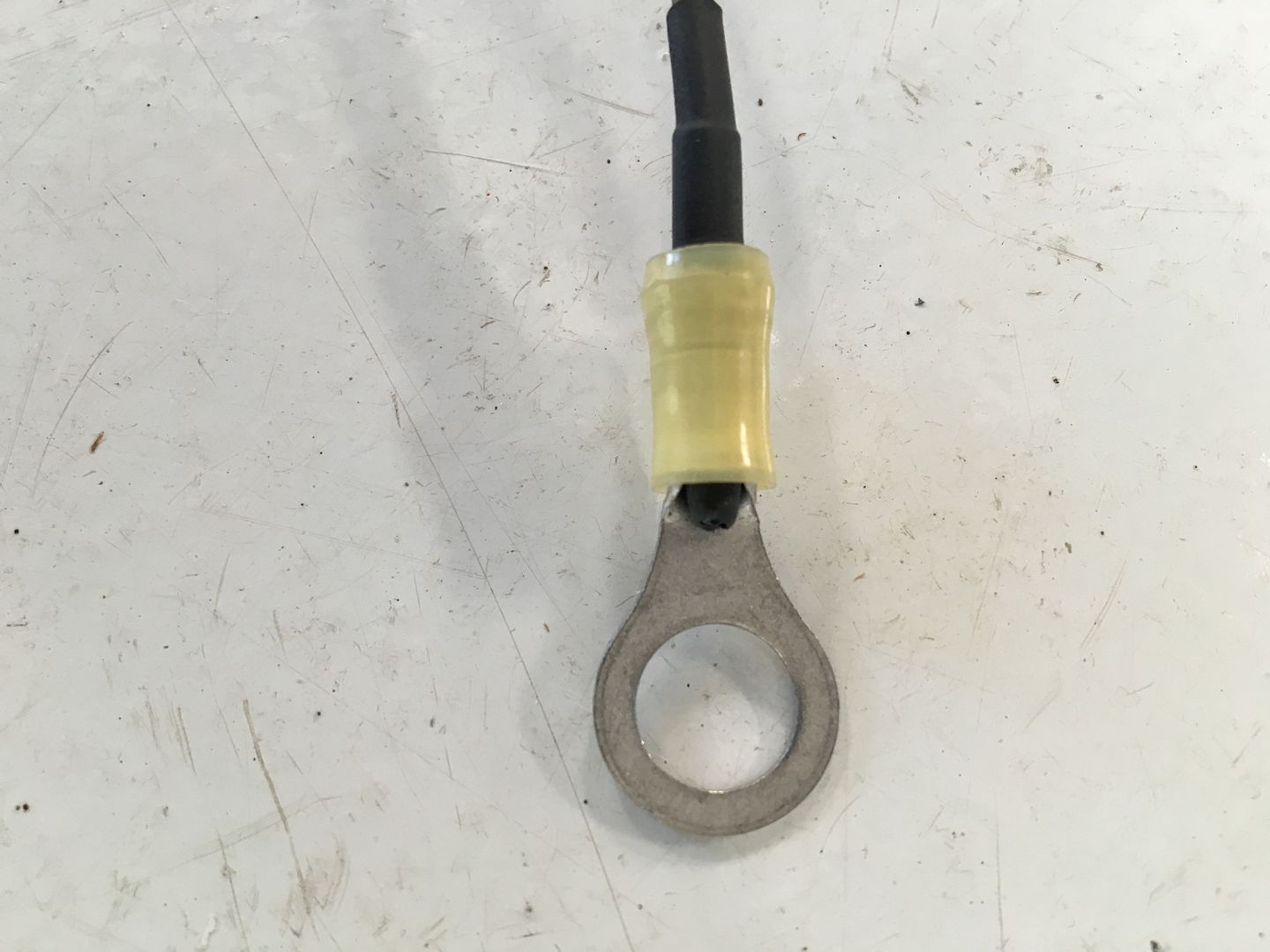 The next trick is to put your temperature sensor in close proximity to your cylinders. A 3/8 inch ring terminal will do the trick (Aircraft Spruce part # 35112). You just need to insulate the thermocouple wire junction (electrically) from the ring terminal. Let me say that again. The thermocouple wires must not ground out on the ring terminal or it will not work. Don't ask me how I know this. Heat yes, Electricity no.